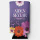 Haga de su día especial una celebración inolvidable con este elegante refrigerador de bebidas de seltzer con temática floral, que cuenta con elegantes letras blancas con confetti de espliego violeta y guirnaldas de coloridas daisies africanas sobre un fondo violeta morado a negro. Personalizar con los nombres de los recién casados y fecha de boda. El reverso muestra un diseño idéntico. ¡Un gran favor para los clientes y un maravilloso toque de boda floral! Diseño © W.H. Sim. Ver más en zazzle.com/expressionsoccasions