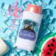 Muéstrate que tienes el control de tu día con esta declaración de un hombre navegando a bordo de un tiburón con el sol y las palmeras en el fondo.