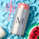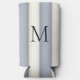 Este refrigerador de bebidas personalizado tiene un audaz monograma negro sobre un fondo de franjas delicadamente sombreadas en azul claro y blanco antiguo.