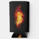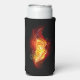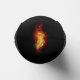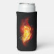 Una brillante pluma de pavo real hecha de fuego y llama sobre fondo negro.