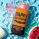 Un diseño divertido y un poco aterrador de Octubre que puedes personalizar con un evento fiesta, nombre u otro texto. El fondo es naranja con un murciélago negro y Feliz Halloween en letras grandes.