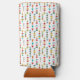Este refrigerador de bebidas seltzer tiene un diseño moderno de mediados de siglo de flechas hechas de líneas negras y diferentes formas en colores retro de rojo, azul, verde, naranja, oro y gris sobre un campo de blanco. ¿Quieres el mismo diseño con colores diferentes? Mándame un mensaje.