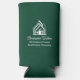 This professional realtor seltzer can cooler is custom made with your real estate company name under the modern white script for an open house. These chic custom green realty business promotional items feature a house logo image for home builder or realty agent company marketing.