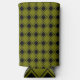 Este refrigerador de bebidas seltzer tiene un diseño moderno de mediados de siglo de diamantes negros sólidos dentro de los contornos de diamante negro en un campo verde.