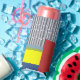Este refrigerador de bebidas seltzer tiene un diseño de líneas negras rotas que corren verticalmente en rectángulos de azul claro, verde, azul, amarillo y rojo. ¿Quieres colores diferentes? Mándame un mensaje.