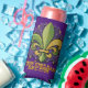 La lata y la cerveza y el refresco los colores del Mardi Gras Fleur de lis