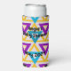Este seltzer cooler tiene un diseño Bauhaus de triángulos repetidos en oro, turquesa, verde azulada, violeta y oro ligero. Si te gusta el diseño pero prefieres colores diferentes, envíame un mensaje.