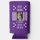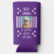 Manga doble seltzer de dos fotos, refrigerador de bebidas. Añade una foto al frente y otra al fondo. Sigue siendo una cita positiva sonriente. Rayas y puntos. Morado y blanco.