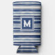 Enfriador De Latas Slim Monograma de rayas azules y blancas