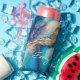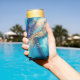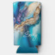 Enfriador De Latas Slim Nombre Personalizado de Mármol Azul Dorado Elegant