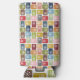 Este refrigerador de bebidas seltzer presenta un diseño moderno de rectángulos de mediados de siglo, a base de rayas con un estallido blanco sobre ellas.