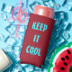 Cooler-Slim (Burg-KEEP IT GUAY) RFPMDesigns ©️ 2024 — All Designs & Photos ©️ 2010 & 2024 Roseanne Pears / Roseanne Pears Mohamed / Roseanne Fischer Pears Mohamed / Roseanne Pears Mohamed Todos los derechos reservados. Arte De Tipo De Letra Amarrado (De Un Lado En El Sentido Del Reloj). (Utilizado, Diseño original). Refrigerador de bebidas delgado : Una forma divertida y colorida de mantener tus bebidas Guay.