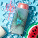 Inusual arte fractal abstracto y moderno azul turquesa de fantasía gris. Diseño de tendencia para su refrigerador de bebidas de seltzer y más.