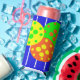 Bolas de picnic abstractas de colores brillantes y corte en refrigerador de bebidas seltzer. Sea la envidia de todos en la corte.