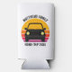 Cool custom road trip seltzer can cooler for spring break or summer vacation with your family or friends. Personalize with your last name or group above the retro sunset and car silhouette. Perfect keepsake souvenir for a trip to a cottage or across the country. Drive off into the sunset with this shirt.