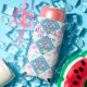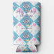 A festive, fun, and tropical design featuring a flock of flamingos with Santa hats surrounded by windsurfing Santas and pastel-colored palm trees on a checkerboard background. If you're celebrating Christmas in tropical climates, then these can coolers are perfect to keep your drinks cool and fresh! You can personalize the coolers with your names or family name and enjoy them year after year.
