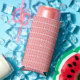 Enfriador De Latas Slim un fondo rojo y blanco con un patrón