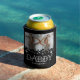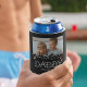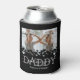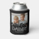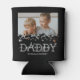 Refrigerador de bebidas moderno para papá con dos fotos de tus hijos, un moderno diseño de corazón negro, el dicho "te queremos papá" y los nombres de los niños.