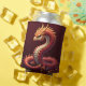 The golden serpent dragon. The dragon's body is covered with intricately crafted scales that shimmer in a harmonious interplay of red, gold, and cream tones, lending the creature a vibrant texture. The dragon's head is reminiscent of an eagle: powerful, majestic, and with a pointed beak symbolizing power and wisdom. The piercing eyes are an intense blue-green.
