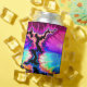 Un diseño de arte fractal con colores azul, rosa, morado, blanco y negro.