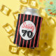 ¡Sencillo a los 70! Celebra esta monumental ocasión con estos Sassy a 70 refrigeradores de bebidas de texto en negro y rosa dentro de un círculo blanco con un simple fondo rosado y negro desnudo.