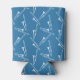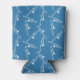 Refrigerador de bebidas de temática trombónica con trombones blancos sobre fondo azul.