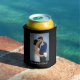 Su foto favorita y dos líneas de texto personalizado resaltan este refrigerador de bebidas de cerveza boda personalizado.
