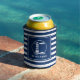 Enfriador De Latas Tu nombre de barco Classic Lighthouse Navy Striped