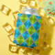 Enfriador De Latas Turquesa y limón con cuadrados plateados