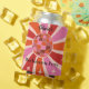 Esta hermosa nevera personalizada es para una fiesta de soltera retro con una bola de discoteca en el centro de un sol radiante retro en rosa, naranja y rojo con estrellas retro. Puedes cambiar el nombre y las palabras en la nevera usando el botón de personalizar.