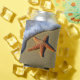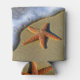 Sorprendente fotografía de playa, una estrella de mar naranja brillante en el borde del agua a punto de ser cubierta por una suave ola.