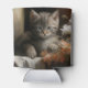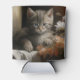 Sonríe cada vez que bebes una copa enlatada en esta encantadora obra de gatito. "A Cosy Corner" es un cuadro con un bonito gatito de mesa gris que se asoma en la parte de atrás de una silla, que mira un acuerdo de flores blancas y naranjas sentado en una mesita al lado de la silla. La piel del gatito es suave y esponjosa, y sus grandes ojos redondos están llenos de curiosidad y asombro. Los tonos cálidos y tierra le dan un toque acogedor y acogedor. Las flores están pintadas con colores vivos, lo que las hace aparecer en el fondo oscuro. El conjunto de la pintura es tranquilo y apacible, invitando al visitante a relajarse y disfrutar de la sencillez de un acogedor rincón con un amigo felino.