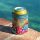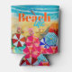 Olas en una playa de arena, surfistas y bañeras de sol bajo sombrillas de colores y las palabras "Vida de playa", estos refrigeradores de bebidas son un divertido añadido a su decoración de verano al aire libre, una reunión familiar, vacaciones o cualquier ocasión. COINCIDIENDO elementos de nuestra colección.