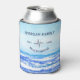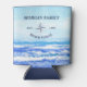 Fondo de olas acuáticas con una casa de playa personalizado escribiendo con una letra inteligente. Este diseño náutico tiene una brújula en el medio con un nombre familiar personalizado y un año de establecimiento que se puede cambiar según tus preferencias.