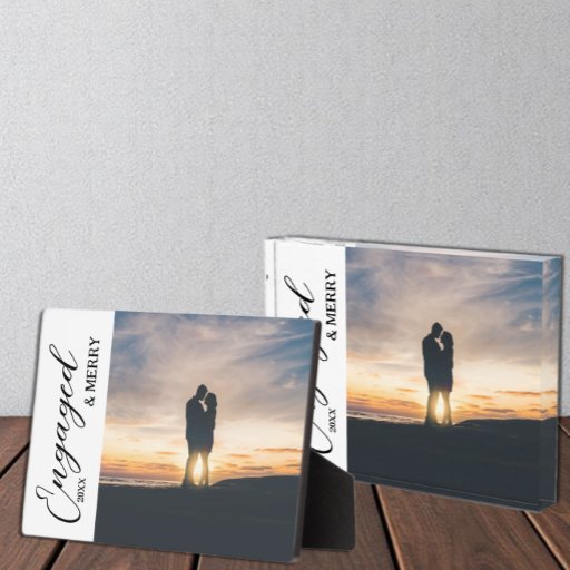 Engaged and merry photo ornament. Photo template via Pixabay licensed under CC0 and must be replaced with your own photo
