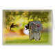 Esta tarjeta muestra una foto colorida de una casa que estaba a punto de aterrizar en su casa de aves.