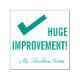 Este inspirador diseño de sellos de goma incluye el mensaje de elogio "¡ENORME MEJORA!" y el nombre de un educador personalizado. También cuenta con una marca de verificación decorativa. Podría ser utilizado por un profesor de escuela, educador o tutor al marcar asignaciones, para indicar que el estudiante ha hecho un gran trabajo.