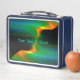 Una imagen fractal azul, verde y naranja con estrellas en el fondo. Añade tu propio texto.