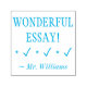 Este motivador diseño de sellos de caucho muestra el inspirador mensaje "¡MARAVILLOSO ESSAY!" y el nombre de un tutor personalizado. Podría ser utilizado por un profesor de escuela, educador, instructor o tutor al marcar las asignaciones, para indicar que un estudiante ha tenido un buen desempeño.
