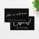 Ofrece a sus huéspedes un cóctel gratuito o dos con estos boletos de bebidas divertidos y audaces. Por un lado se lee "¡Tengan uno en la casa!" y "Bien por una bebida adulta" y por el otro se lee "¡Saludos!" y un titular de plantilla para sus nombres. Las sobreimpresiones gráficas de texto no editables se representan en una fuente de escritura a mano moderna. Otro texto aparece en un tipo de letra sans-serif simple; esto se puede cambiar si lo prefiere. Todo el texto está en blanco y el fondo es un negro editable; puede cambiarlo a cualquier color que prefiera, si desea un cambio. Por favor, no dudes en contactarte si tienes solicitudes o necesitas ayuda de personalización. // 100 // Diseñado por Melody Watson para la Muserie de papel.