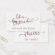 Ofrece a sus huéspedes un cóctel gratuito o dos con estas elegantes entradas para bebidas. Por un lado se lee "déjennos comprarle una bebida" y "Buena para una bebida adulta" y por el otro se lee "¡Saludos!" y un lugar de plantilla para sus nombres. Las sobreimpresiones gráficas de texto no editables se representan en un tipo de letra de guión de caligrafía hermosa con remolinos y florecientes. A este texto he agregado un efecto de moda de Relieve metalizado de oro falso rosa. Otro texto aparece en un tipo de letra serif con mayúsculas y un color complementario; puede editarse si lo prefiere. El fondo es un blanco editable; puede cambiarlo a cualquier color que prefiera, si desea un cambio. Por favor, no dudes en contactarte si tienes solicitudes o necesitas ayuda de personalización. // 86 // tómese una bebida sobre nosotros, buena para una bebida adulta, boleto de bar para una bebida alcohólica, boleto de bar para la recepción de bodas, boletos de bar para la fiesta de bodas, tipografía elegante de boletos de bar, tipo de letra sofisticada, edición de su nombre y mensaje, vale artístico de bebida, diseño único, tipo de letra de guión elaborado, caligrafía de escritura a mano con flores // Diseñado por Melody Watson para la Muserie.