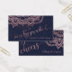 Este magnífico boleto de bebida podría ser el toque final que has estado buscando, para la celebración o el evento de tu boda boho. En un guión elaborado y festivo, aparecen las palabras "déjennos comprarle una bebida" en la parte delantera de este boleto de bebida moderno. Están adornadas con un falso efecto de Relieve metalizado de oro rosa. "Good for One Adult Bebida" se agregó al campo de texto editable en una fuente serif complementaria en la parte inferior. En el otro lado, el hermoso superpuesto gráfico dice "vítores" y se ha agregado un portapapeles para sus nombres. Cada lado está decorado con una mandala elaborada, también adornada con el mismo efecto dorado subió. El fondo es marino y se puede cambiar a cualquier color que se prefiera. Otras variaciones de esta tarjeta ya se han configurado con fondos en blanco y negro, si desea comparar. Cada capa del diseño se ha desbloqueado para que pueda personalizar aún más a su gusto. Si quieres cambiar el tamaño o la posición de alguna de las palabras, o de la mandala, ¡esa opción es tuya! // 56/7 // Diseñado por Melody Watson para la Muserie de Papel.