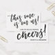 Estos boletos de bebidas audaces cuentan con una letra de escritura manual moderna e informal en negro sobre un fondo blanco editable. En un sitio lees "este está sobre nosotros" y "Bueno para una bebida adulta" y en el otro lado está la simple palabra "ovaciones" y un lugar de plantilla para los nombres de la pareja. (Alternativamente, puedes usar este billete de bebida para cualquier evento o fiesta en el que quieras ofrecer bebidas alcohólicas gratuitas a tus invitados... ¡no tiene que limitarse a celebraciones y recepciones de bodas!) Todo el texto editable se presenta en un estilo moderno, con todas las letras y sin formato, que puedes cambiar si lo deseas. // 90 // Diseñado por Melody Watson para la Muserie de Papel.