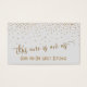 En un cambiante y moderno tipo de letra, las palabras "¡este está sobre nosotros!" aparecen en la parte delantera de este billete de bebida. La frase ha sido adornada con un falso efecto purpurina de oro. "Buena bebida para un adulto" es el campo editable en un tipo de letra art deco coordinado en la parte inferior. En el otro lado está "Cheers" y un titular de un lugar de plantilla para sus nombres. Los festivos confeti adornados con purpurinas de oro parecen caer desde arriba en ambos lados. Puede cambiar el fondo a cualquier color o color que desee. // 57 //