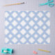 Un diseño geométrico de diseño con un entramado de azul claro. El cruzamiento de color azul oscuro separa los grandes y pequeños diamantes blancos. Imagen creada digitalmente. Copyright © Claire E. Skinner, todos los derechos reservados.