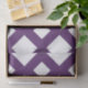Un patrón audaz y geométrico de grandes y pequeños diamantes blancos sobre un fondo morado. El morado forma una entramado que separa las formas de diamante blanco. Imagen creada digitalmente. Copyright ©Claire E. Skinner, todos los derechos reservados.