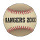 Béisbol blanco en Coach Text sobre sepia con el nombre del equipo al revés. El nombre del equipo y el año son editables.