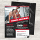 Un diseño de volante profesional ideal para entrenadores de fitness y servicios de formación personal para mujeres. Ya sea que ayude a personas con pérdida de peso, entrenamiento de fuerza, planificación de comidas nutricionales y clases de ejercicios de entrenador y campamentos de entrenamiento físico, este es un gran volante para anunciar sus servicios y clases. También hay espacio para una cita motivacional en la parte trasera. El diseño tiene un fondo de color negro y si el rojo no funciona para usted, todas las áreas de rojo se pueden cambiar a otro color en el Editor.