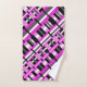 El conjunto de toallas tiene un toque moderno, en tonos rosas, grises, negros y blancos.