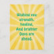 Fondo amarillo soleado con rayos de sol brillantes y un mensaje esperanzador. Alegre pero respetuoso, ideal para alguien que se recupera de una enfermedad o cirugía.